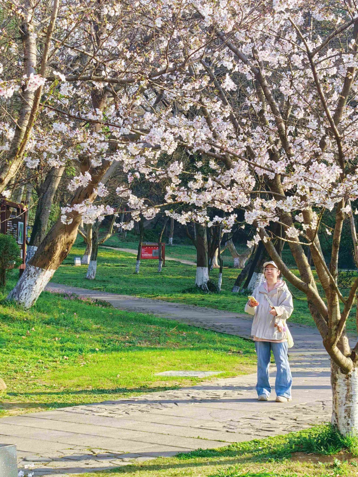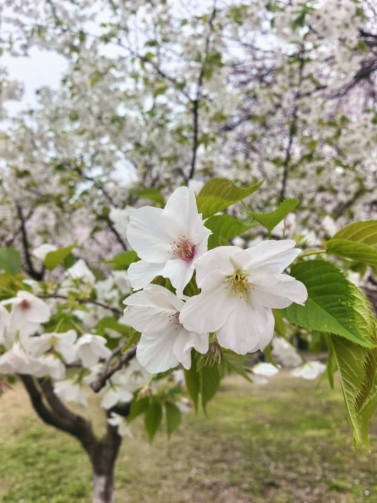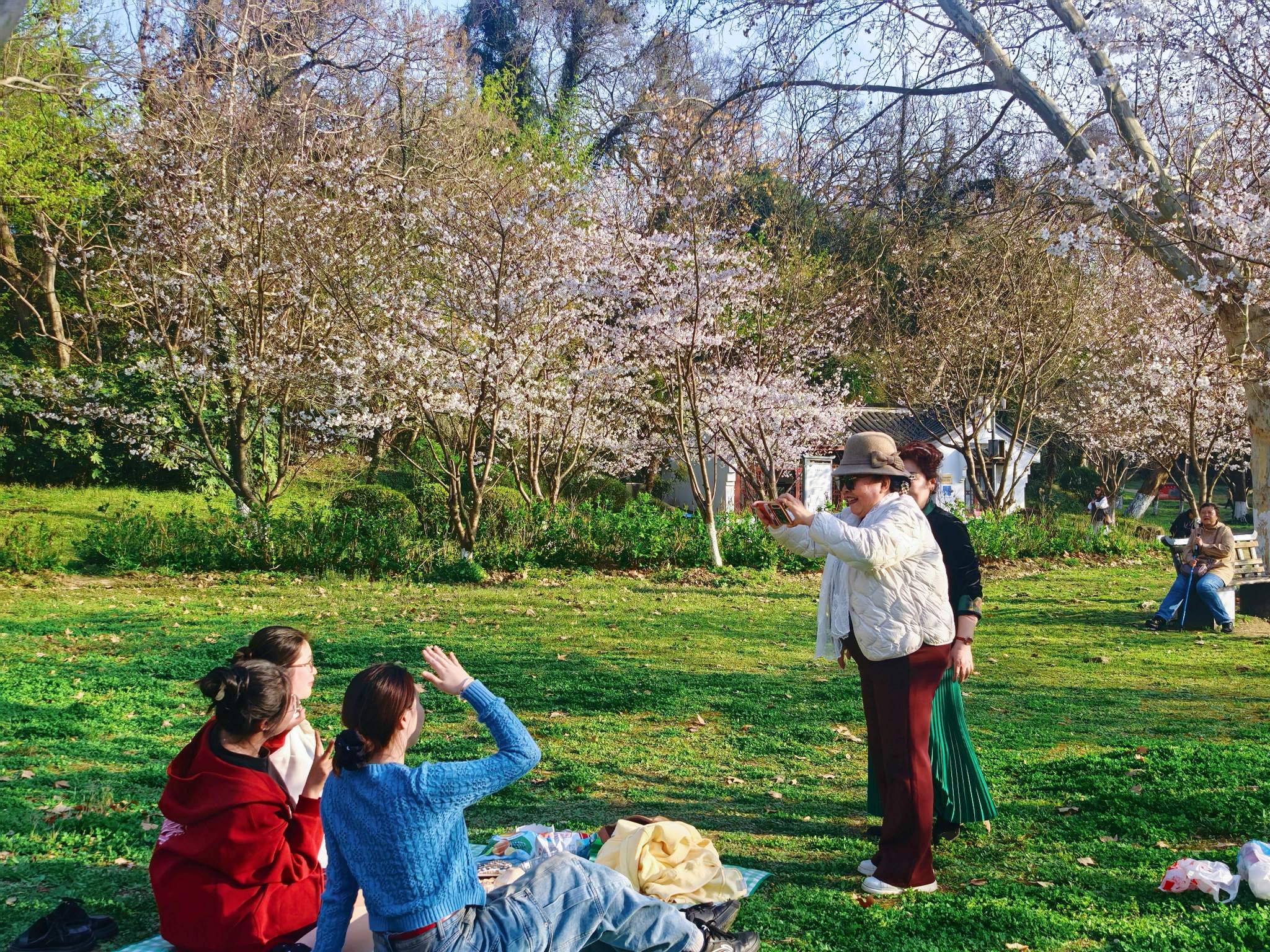 正是樱花盛开的高光时刻。漫山遍野的樱花,