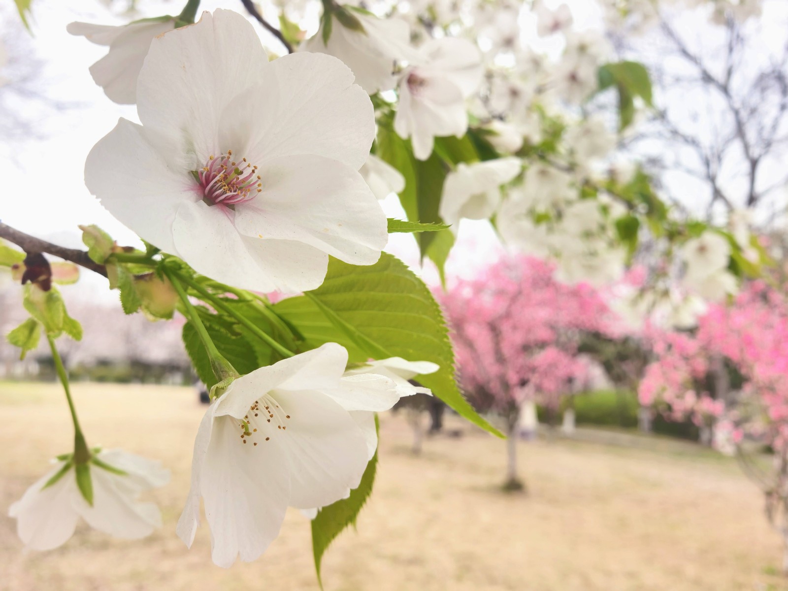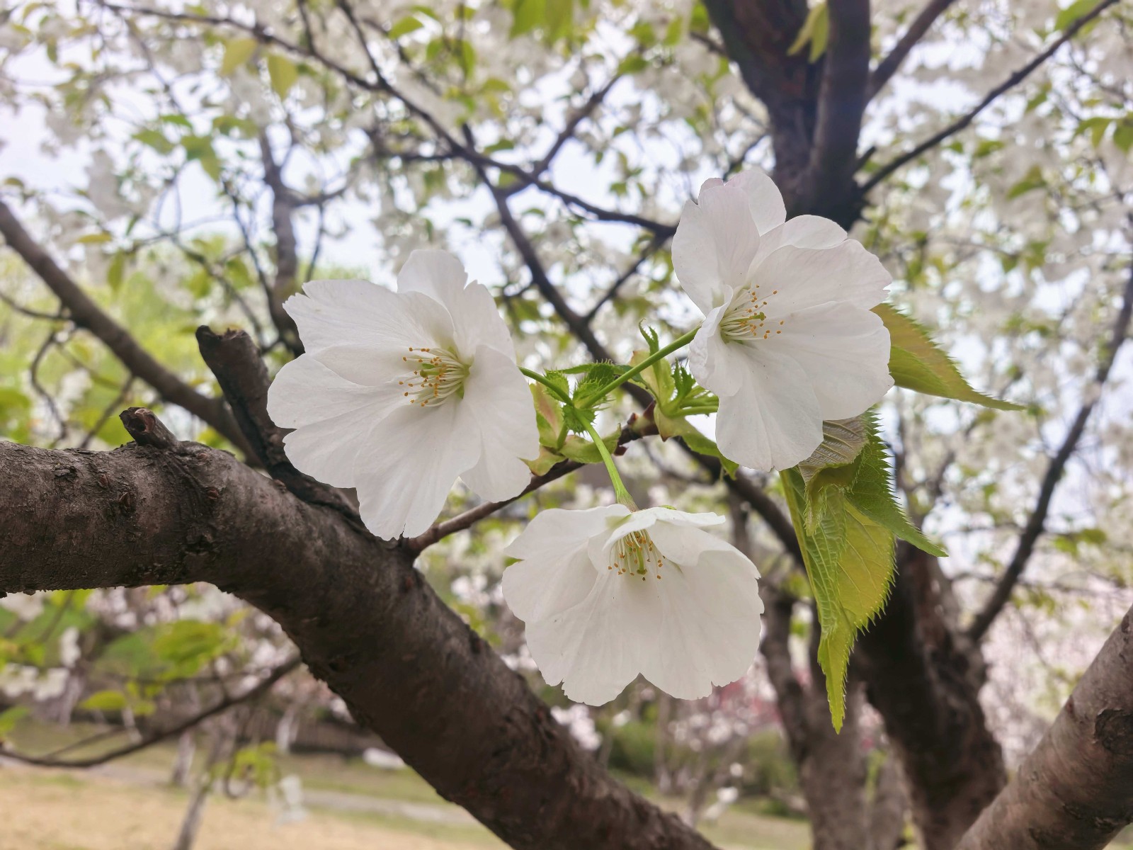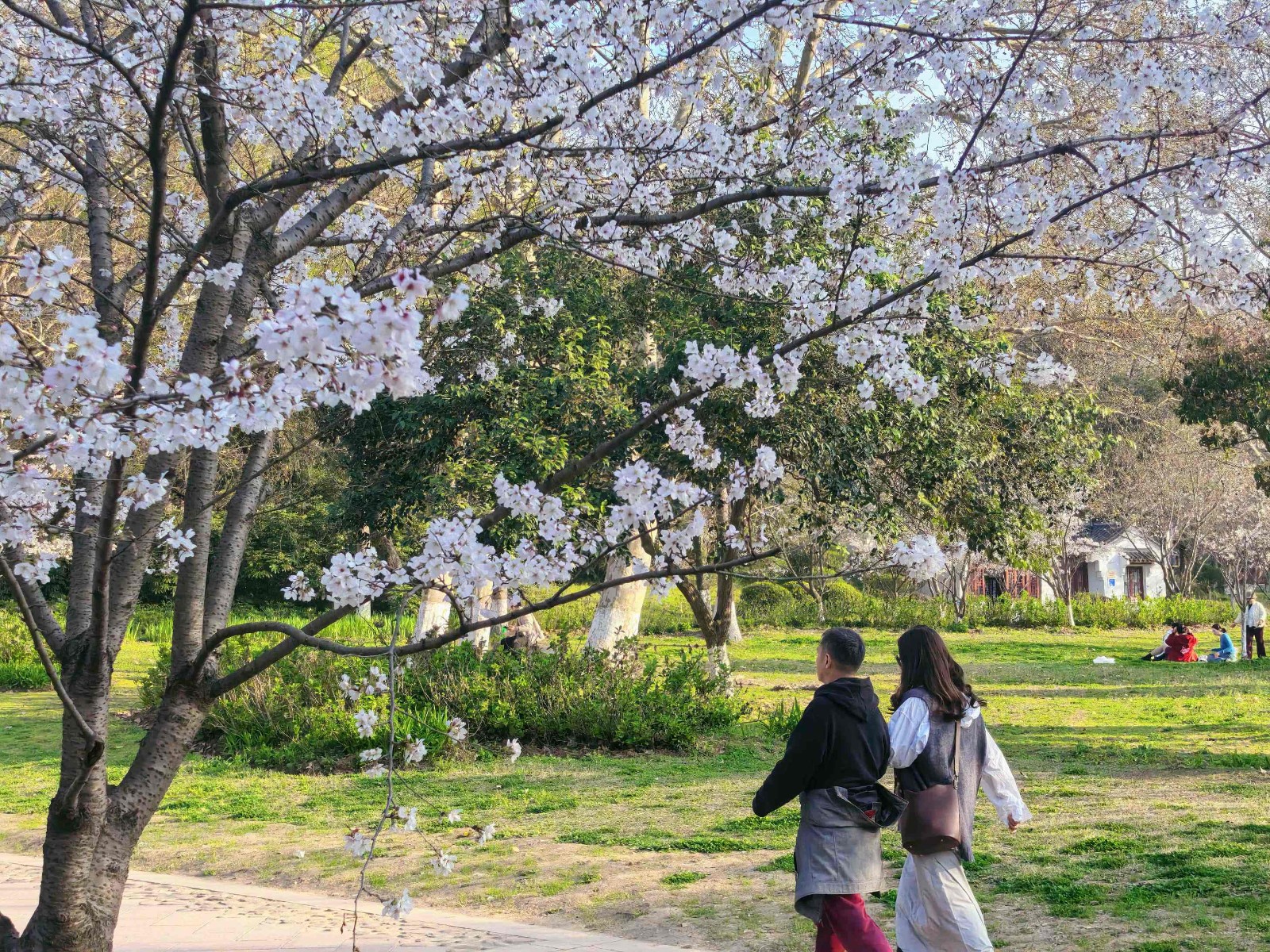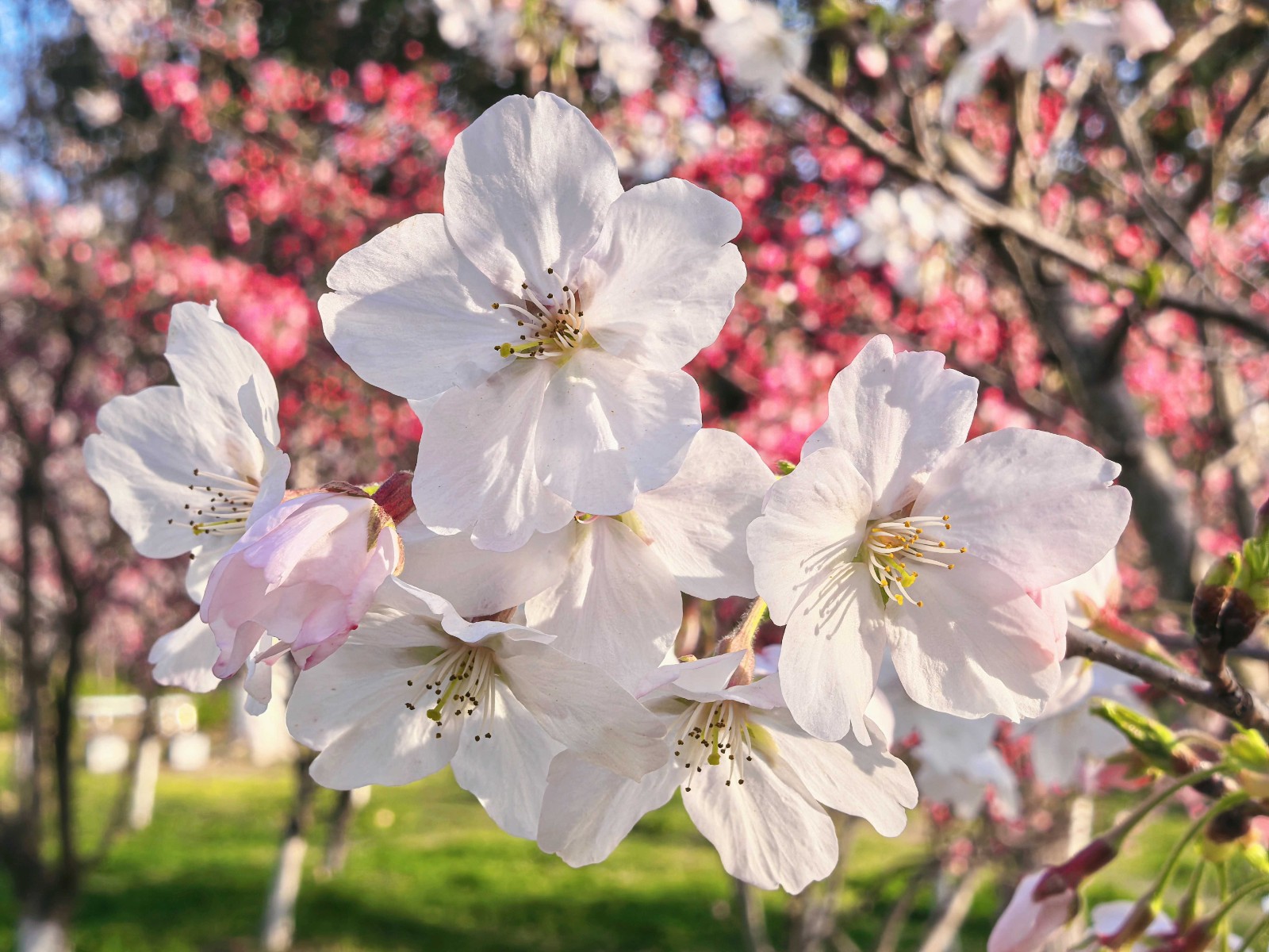 正是樱花盛开的高光时刻。漫山遍野的樱花,